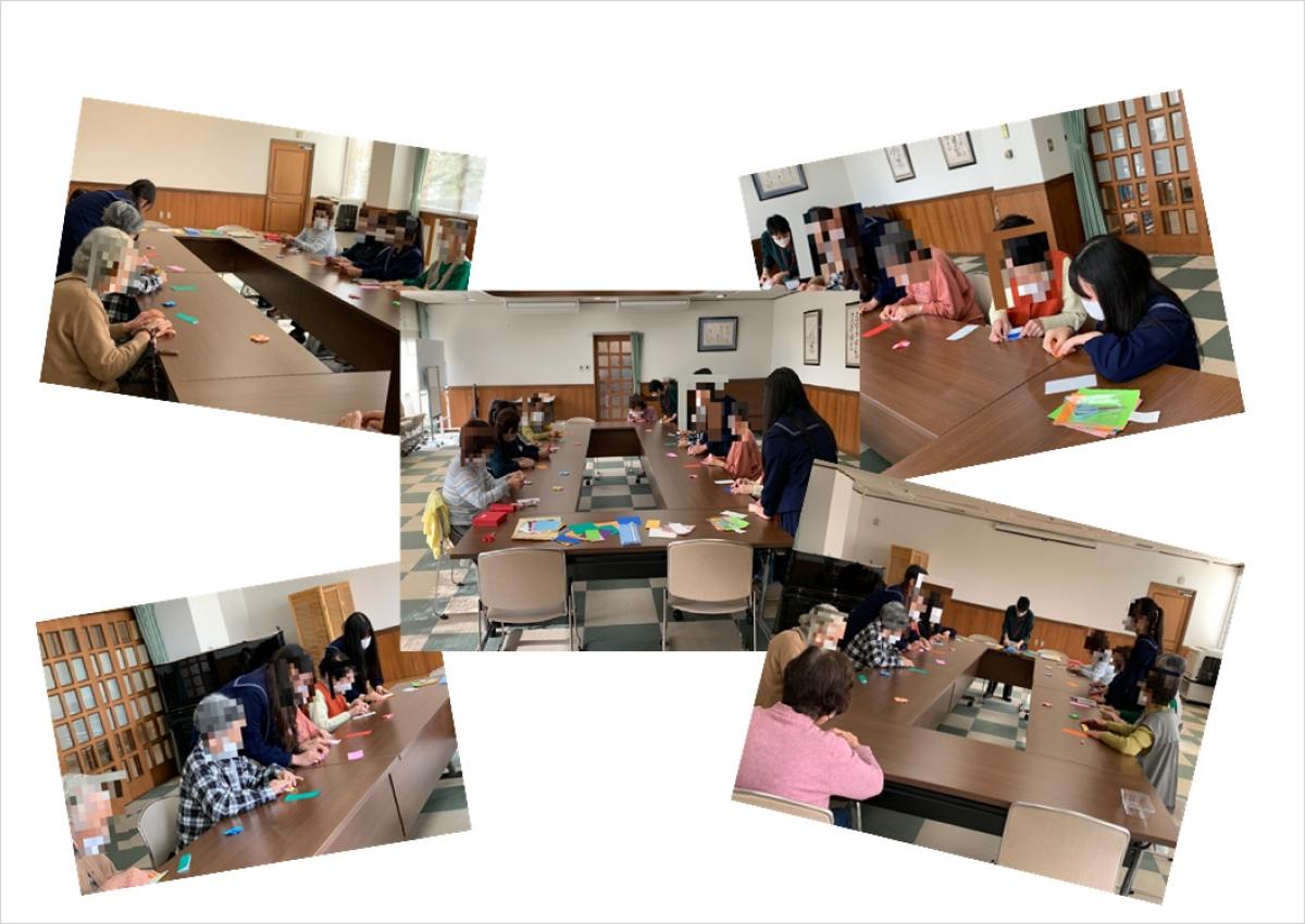 地元友が丘高校の女子生徒さん3名により「折り紙アクティビティ」をして頂きました。世界中で幸運のシンボルとして親しまれている「四葉のクローバー」を折り紙で作ります。若くて可愛らしい女の子たちが、優しく丁寧に接して下さった事が、ご入居者にとっては何よりも元気を貰えた様な気がしました~ (^^)/