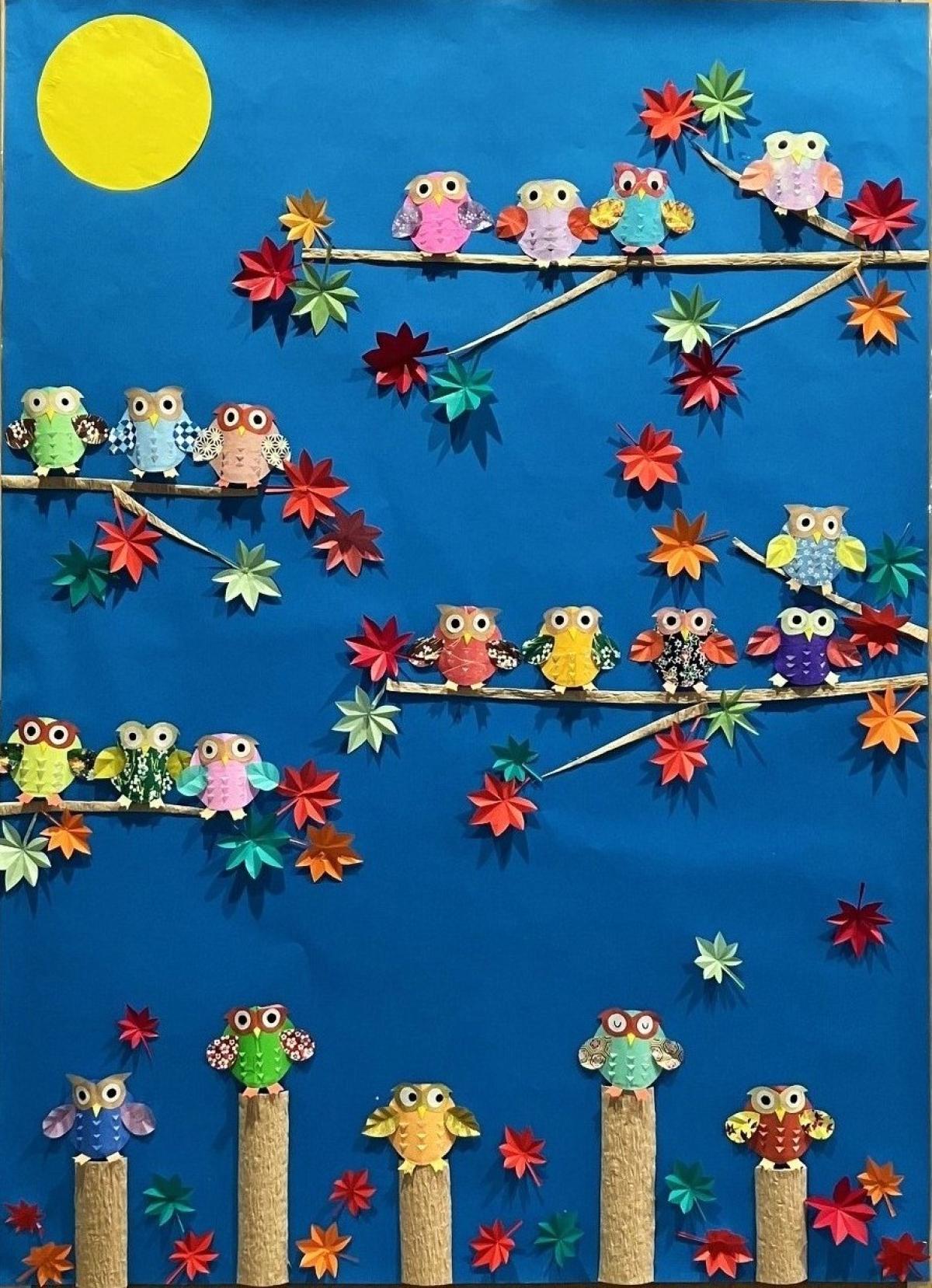 3年前に大好評だった「ふくろう」を今年も作成しました。2022年の作品と同じデザインですが見比べてみると少し違います。今年も好評を頂いており20羽のふくろう達が見る人の気持ちを優しくしてくれます。